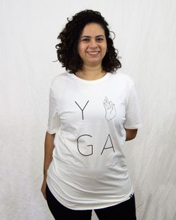 A Camiseta Mudra é confeccionada em algodão fio 40, tem mangas curtas, é macia e confortável, ideal para utilizar em práticas ao ar livre. Modelo levemente solto ao corpo e um pouco mais alongado, o que confere ainda mais segurança e conforto no momento da prática de yoga ou qualquer outra atividade física.