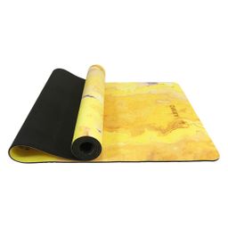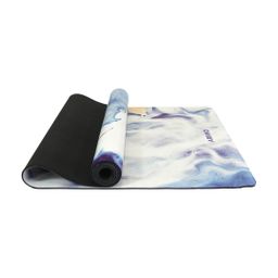 O material em suede fornece aderência e seu lado inferior em borracha natural faz com que o mat não deslize no chão durante as práticas.